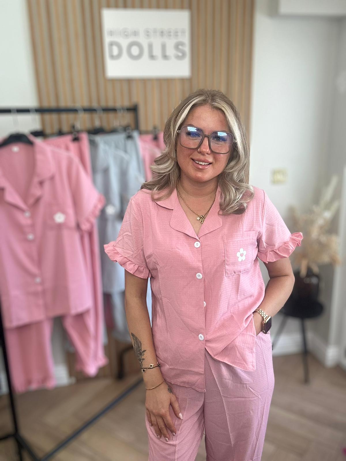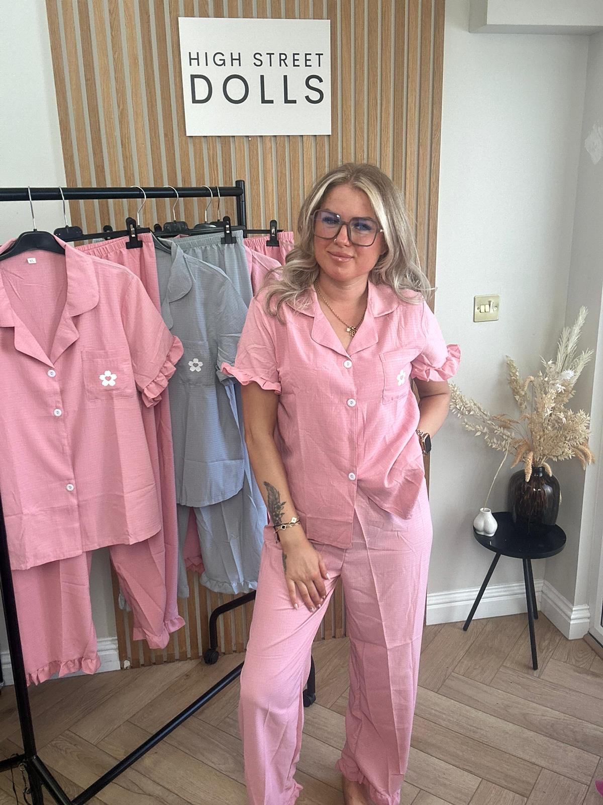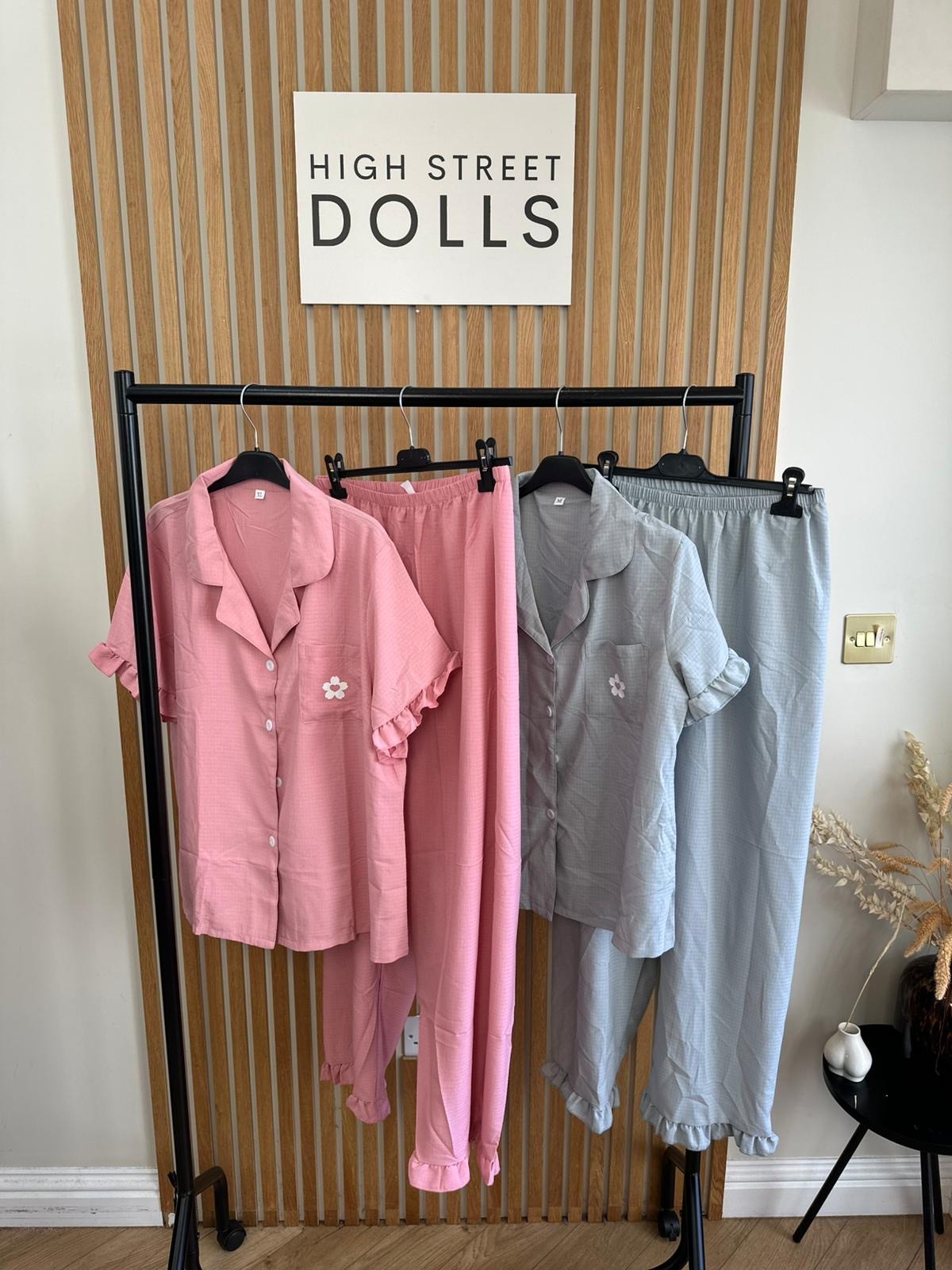 Women’s Pyjamas Set Short Sleeves Trousers Ruffle Details Floral Print Button Down PJs