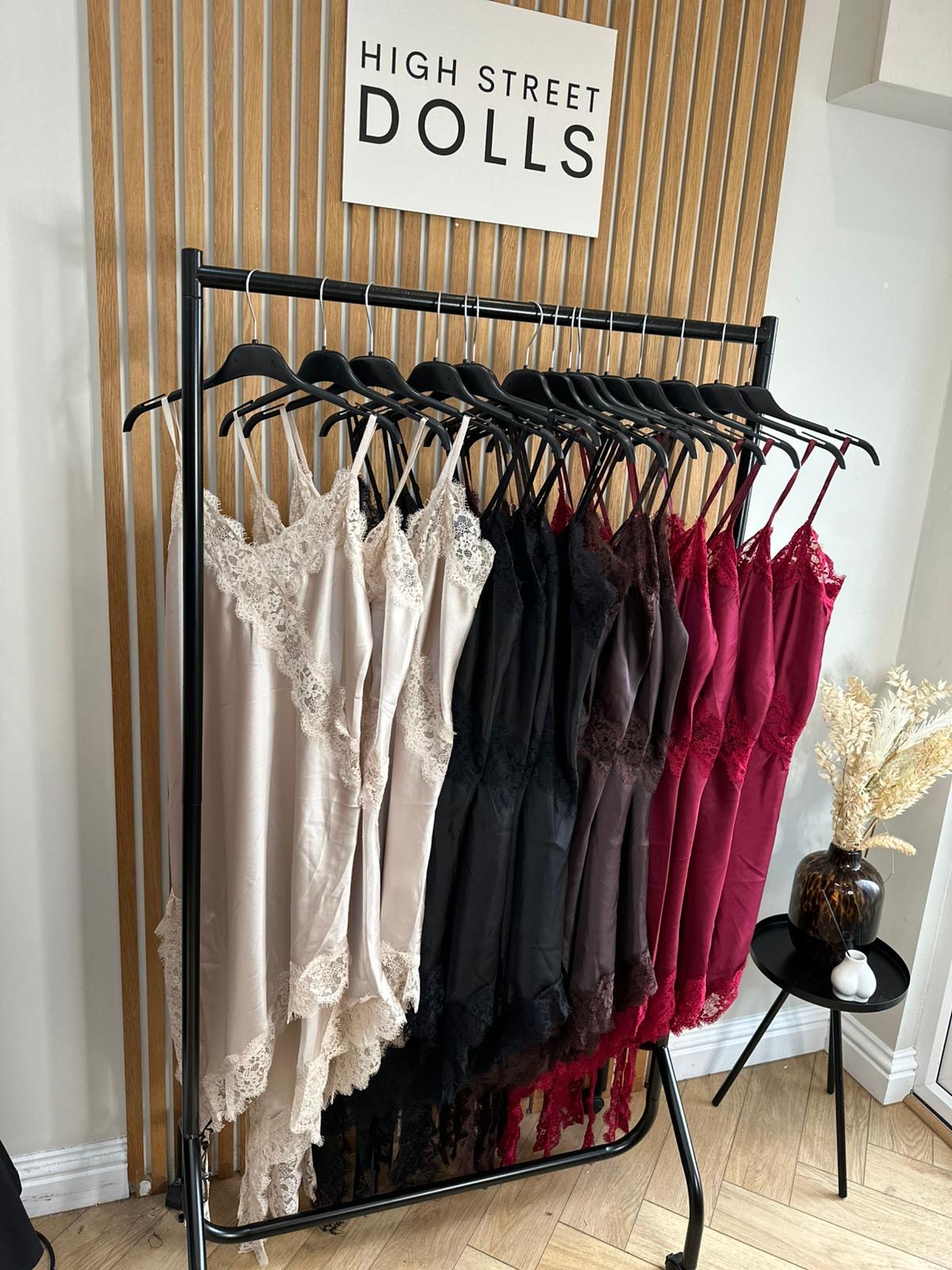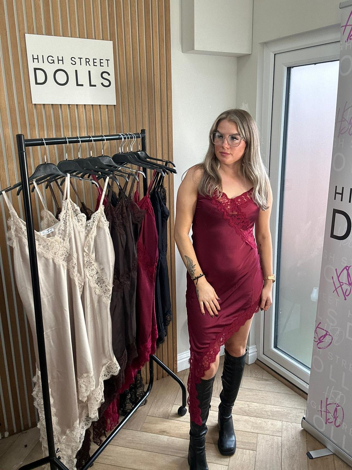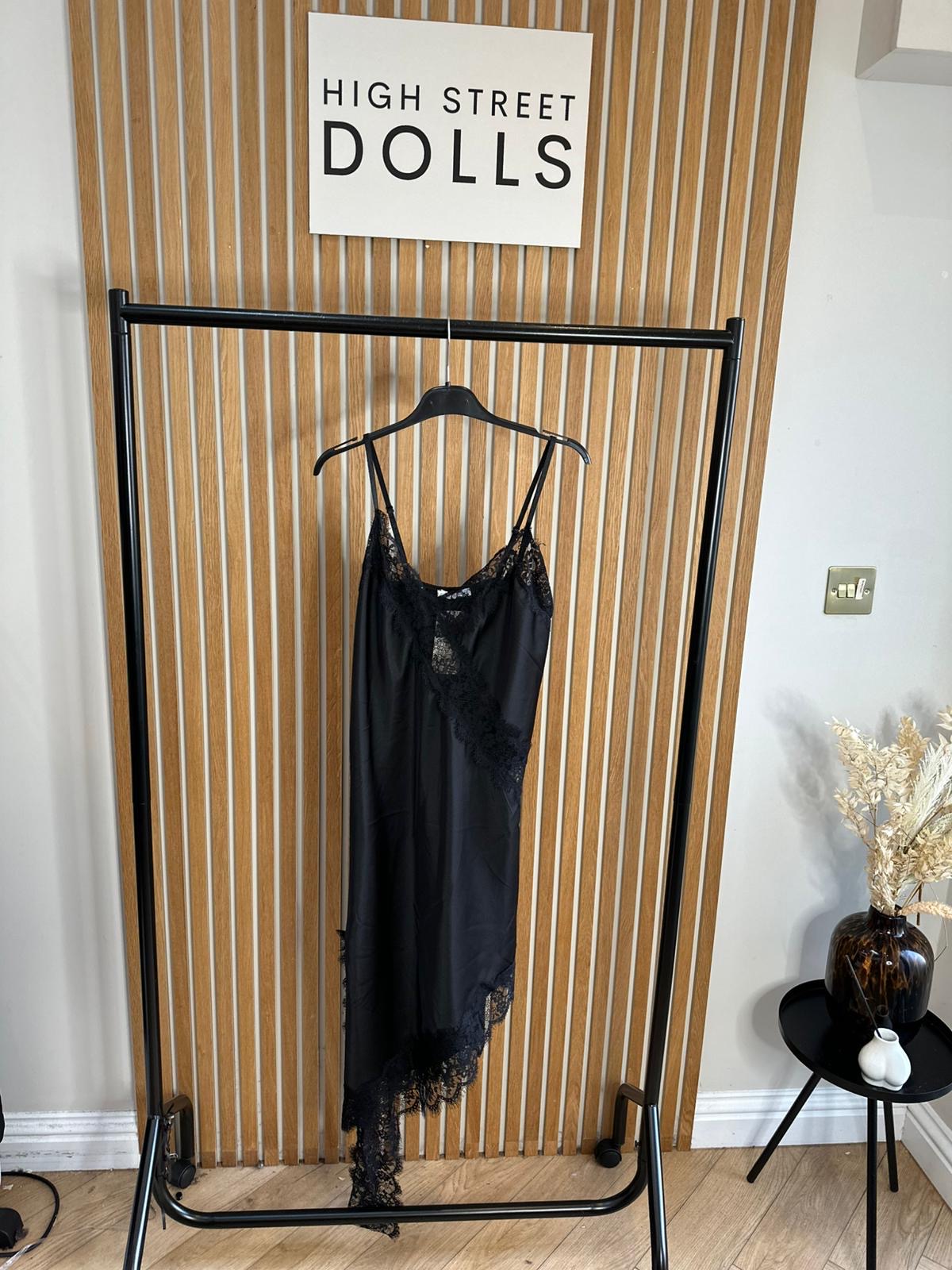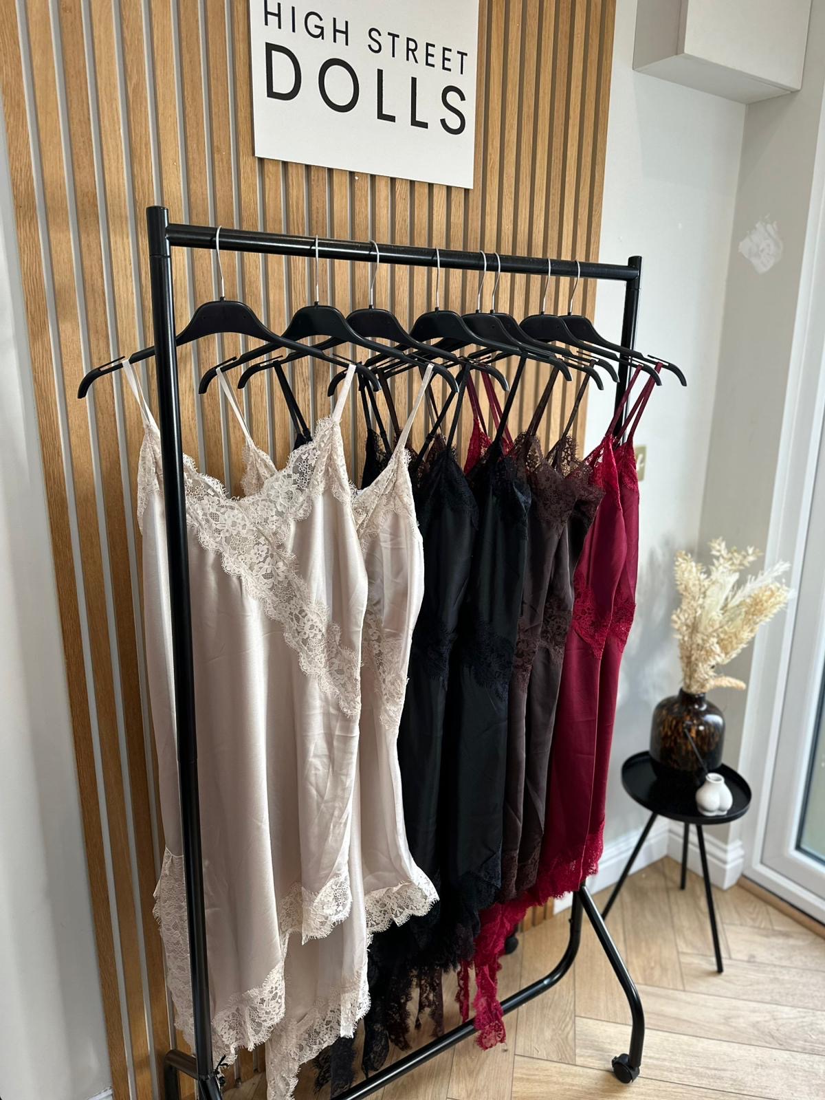 Florence Satin Slip Dress Lace Trim Spaghetti Strap Autumn Winter Christmas Party Festive