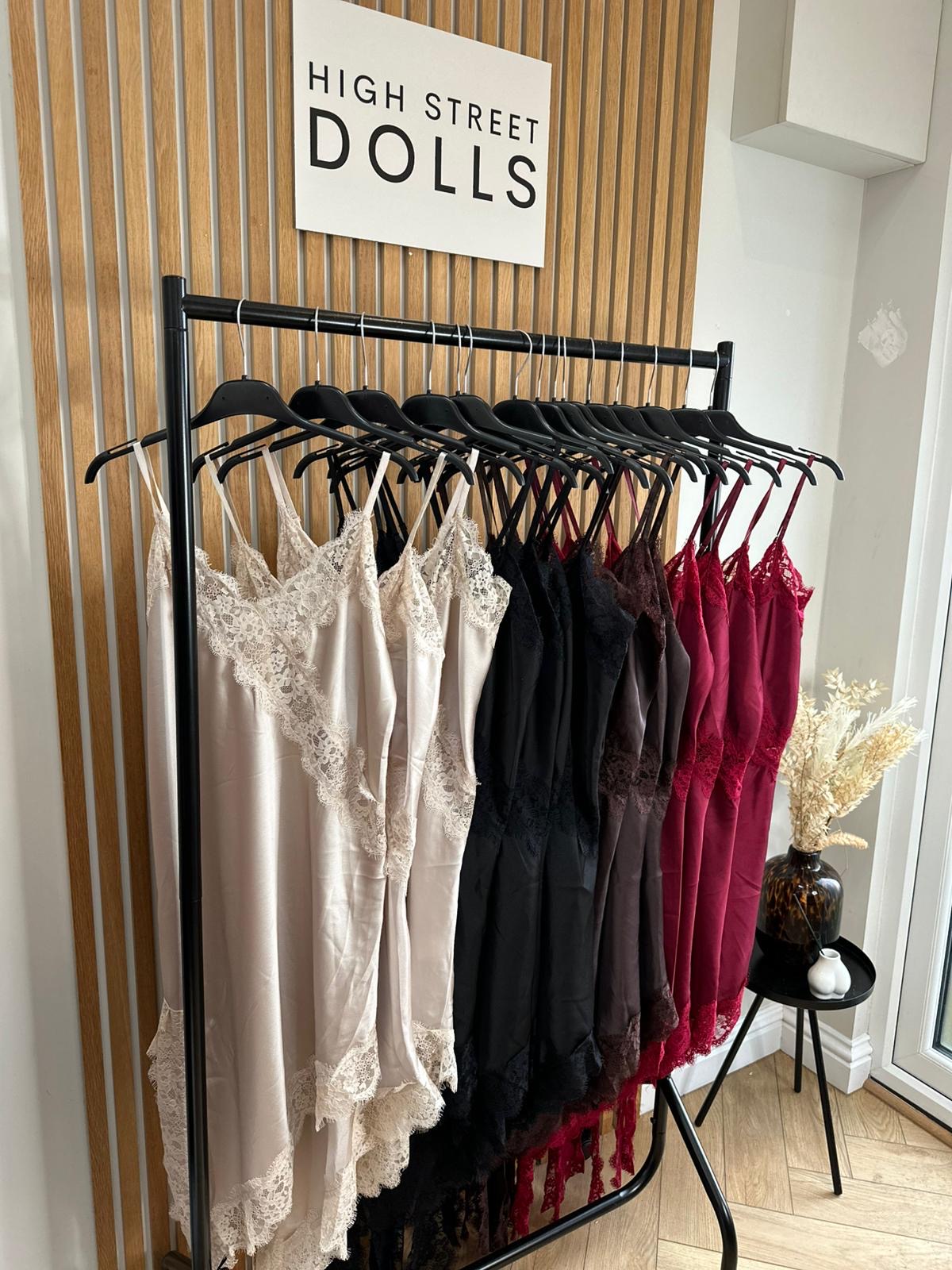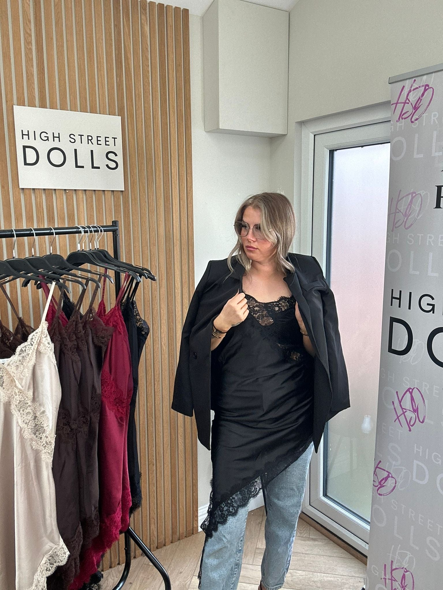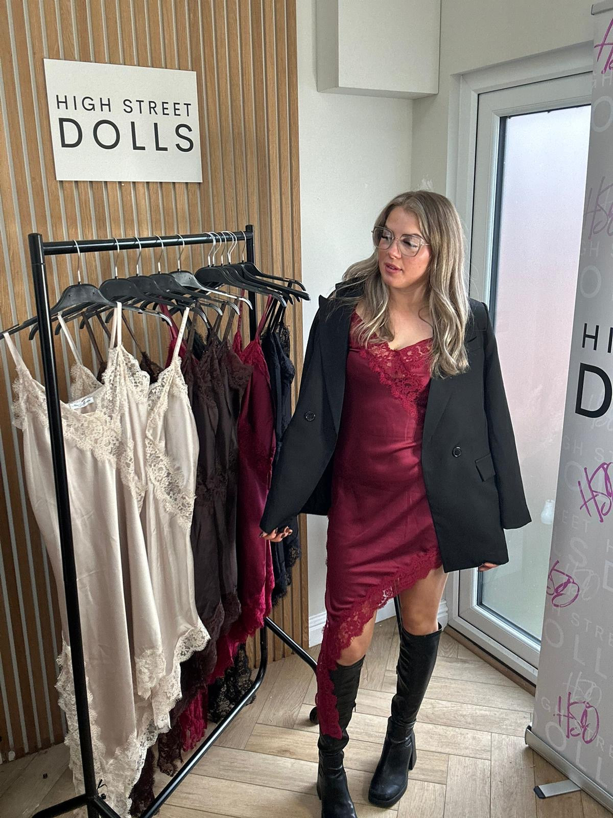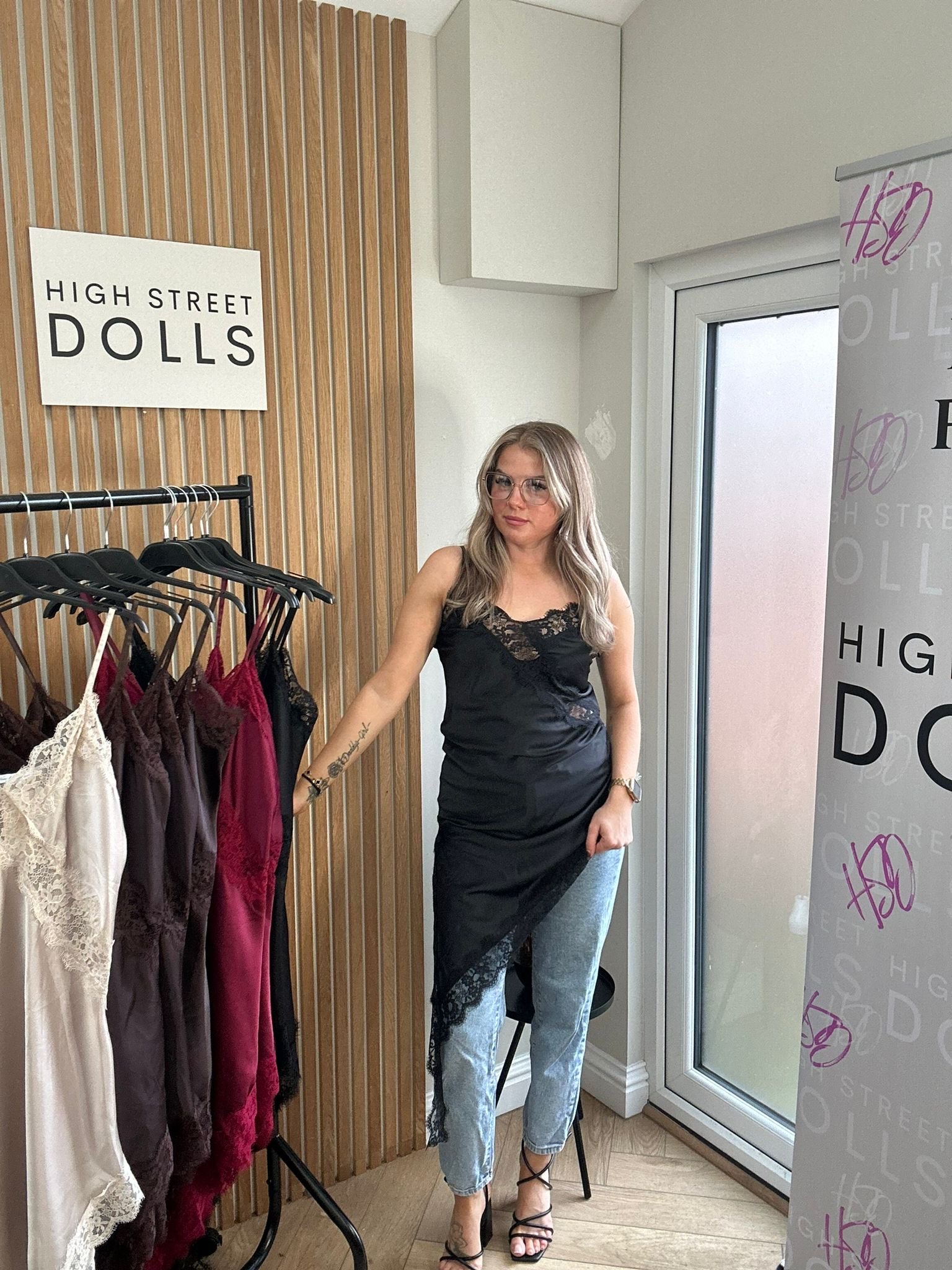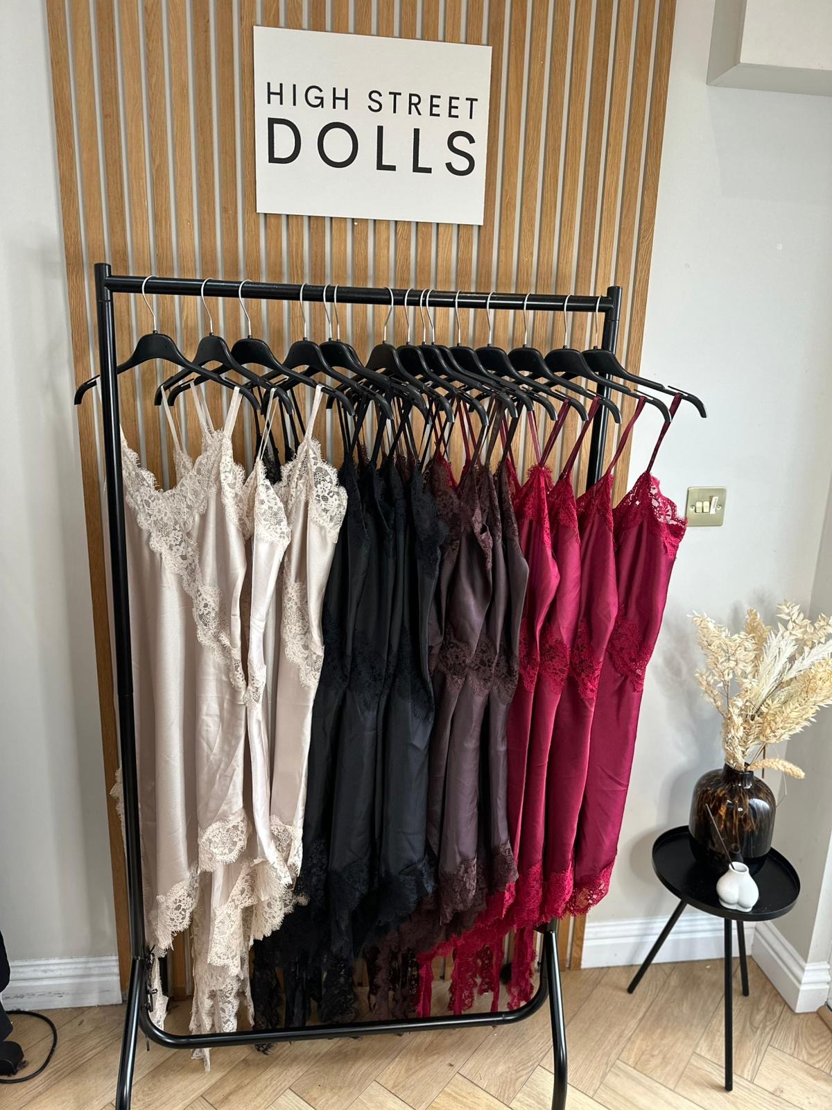 Florence Satin Slip Dress Lace Trim Spaghetti Strap Autumn Winter Christmas Party Festive