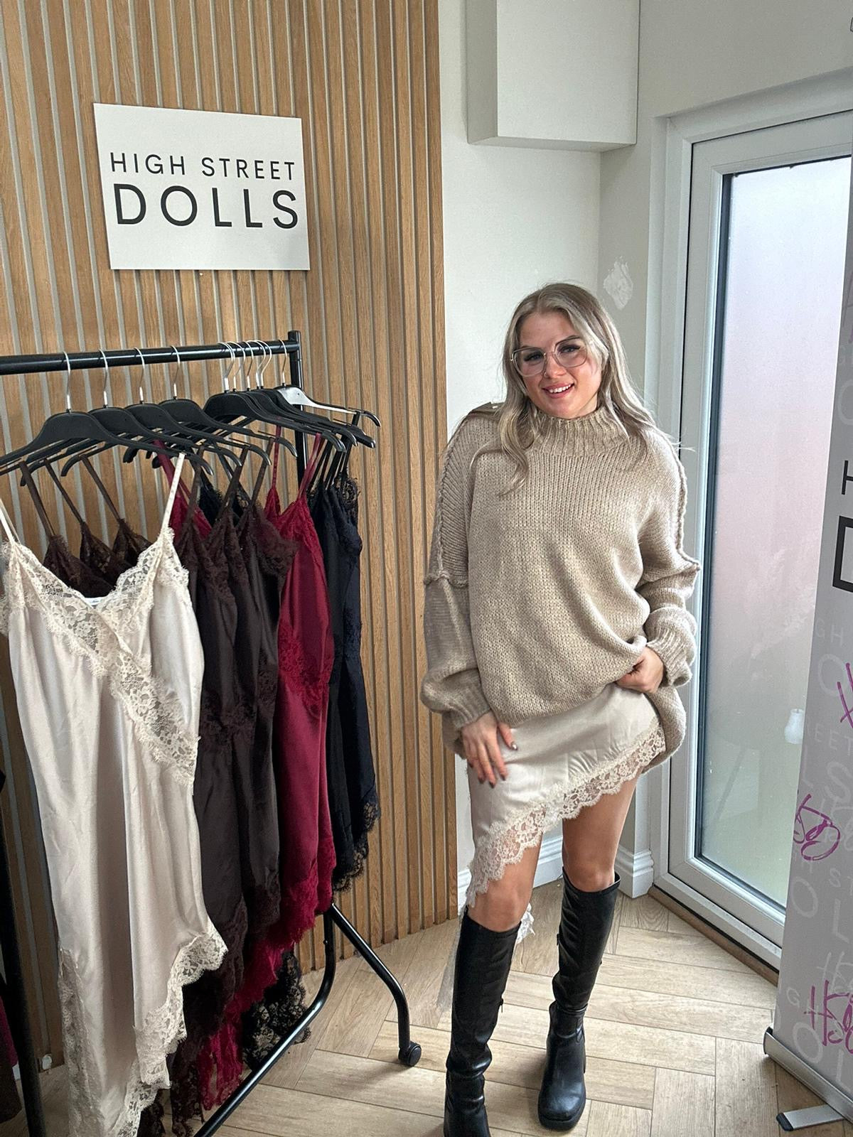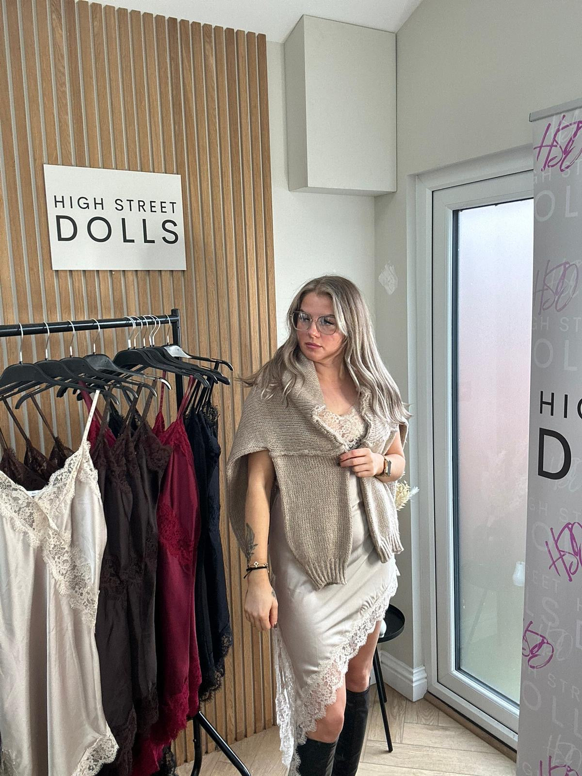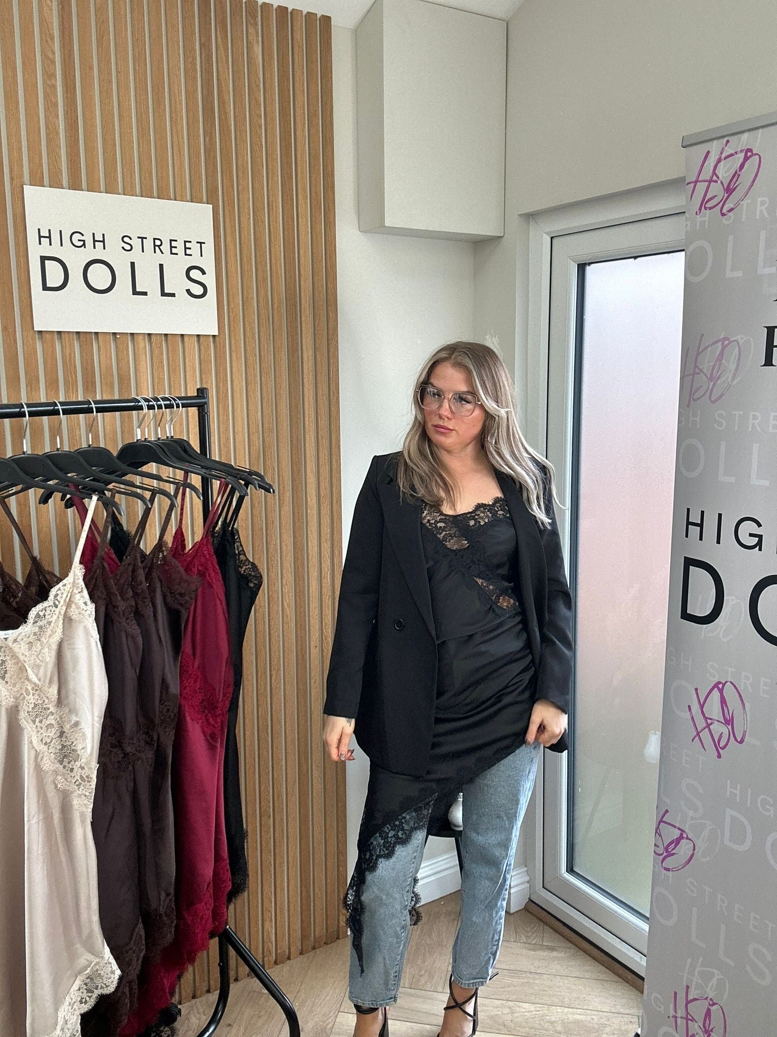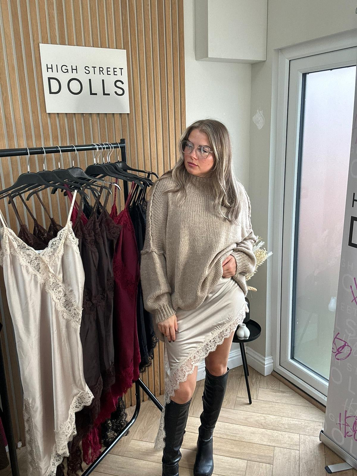 Florence Satin Slip Dress Lace Trim Spaghetti Strap Autumn Winter Christmas Party Festive